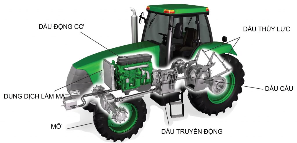 Máy kéo, máy cày: Cần dầu nhờn có độ nhớt cao để chịu tải nặng và hoạt động lâu dài.